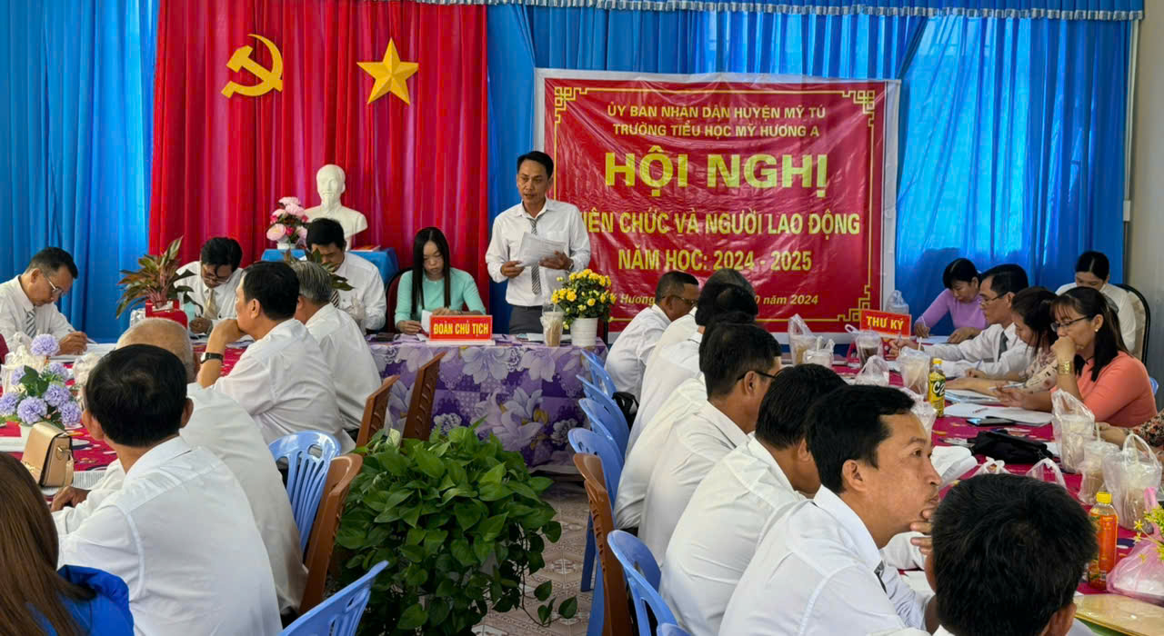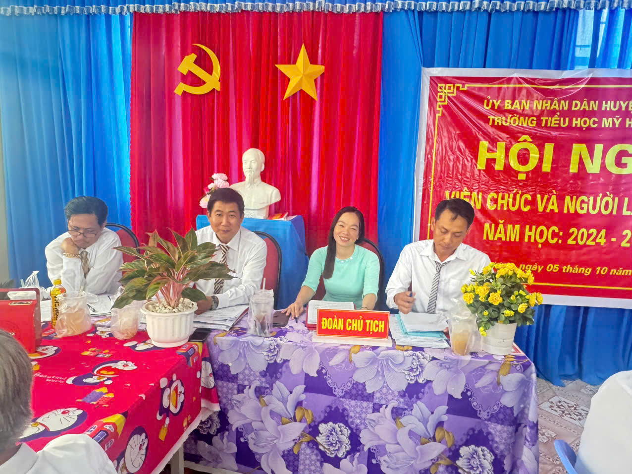 ✍ Vào lúc 7 giờ 30 phút, ngày 05/10/2024, trường TH Mỹ Hương A long trọng tổ chức Hội nghị viên chức và người lao động năm học 2024 – 2025. Hội nghị diễn ra tại Phòng họp hội đồng với sự tham dự đầy đủ của toàn thể cán bộ, công chức, viên chức và người lao động trong nhà trường.