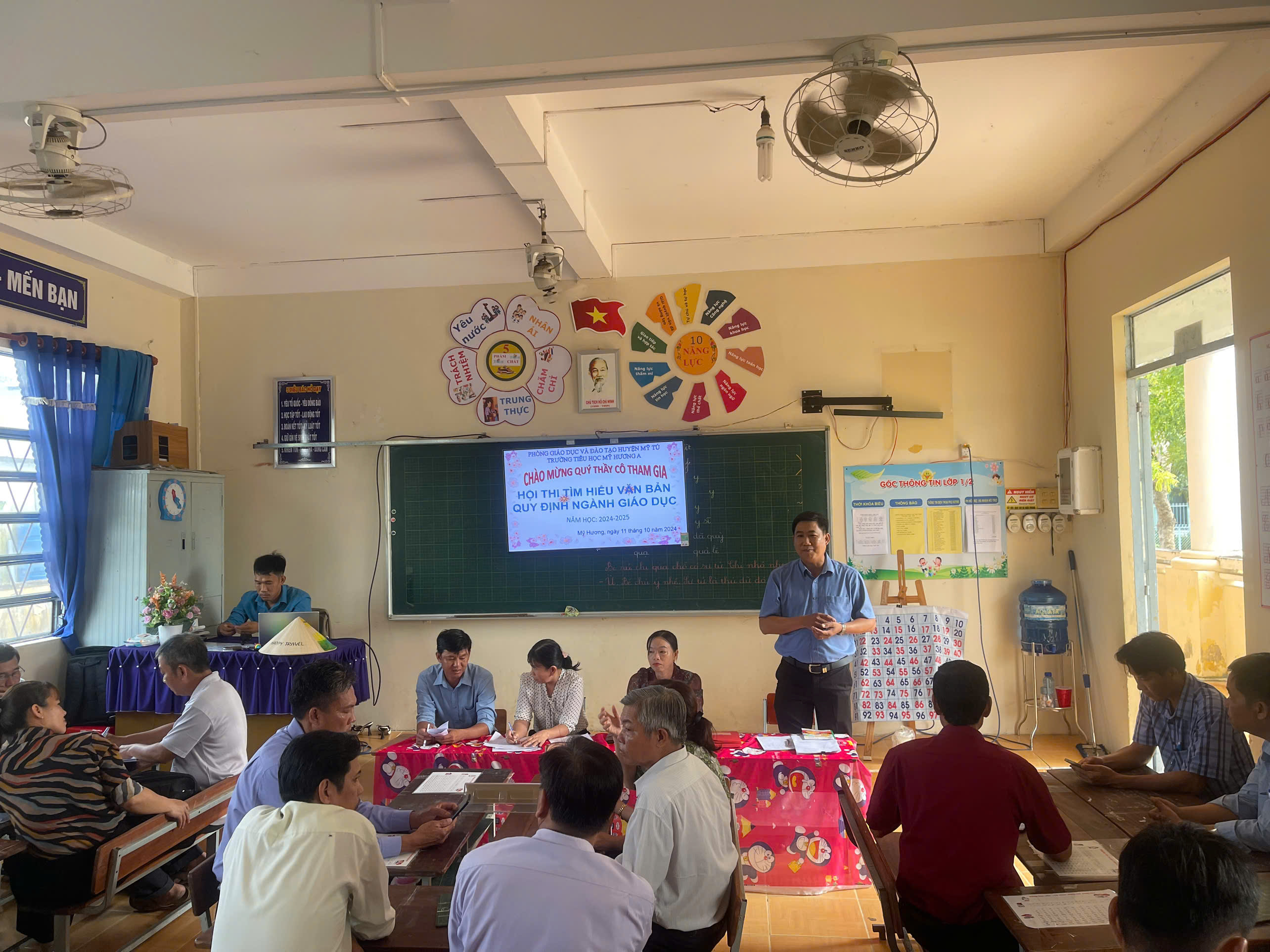 * 13 giờ 30 chiều ngày 11 tháng 10 năm 2024, tại phòng lớp học 1A2 Trường TH Mỹ Hương A tổ chức hội thi tìm hiểu văn bản quy định ngành giáo dục năm học 2024-2025. Hội thi nhằm mục đích: