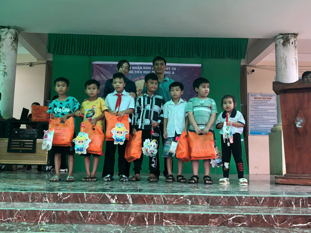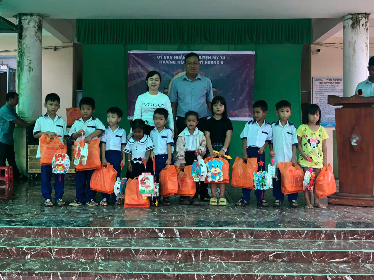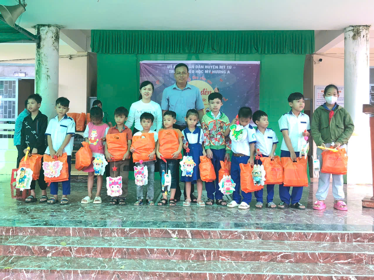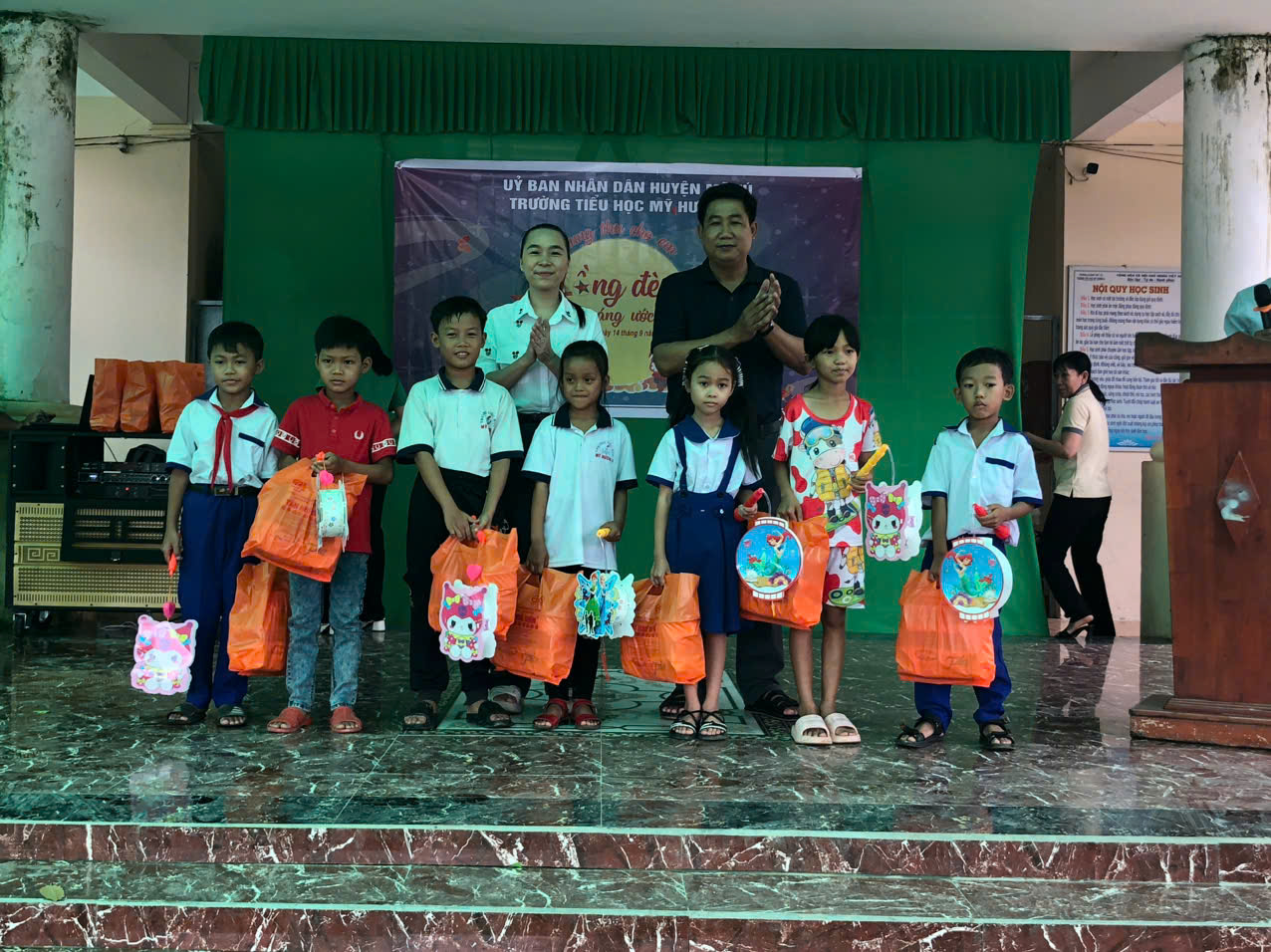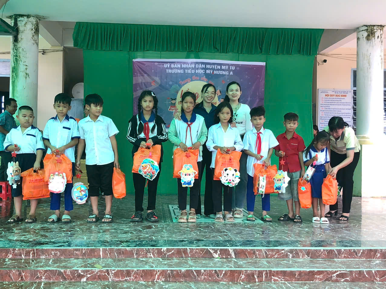 Chiều ngày 14/09/2024, tại sân trường TH Mỹ Hương A, Liên đội trường tiểu học Mỹ Hương A phối hợp với Ban giám hiệu nhà trường và hội cha mẹ phụ huynh học sinh của trường tổ chức Trung thu cho các em và phát 52 phần quà cho các em học sinh có hoàn cảnh khó khăn nhằm tạo điều kiện cho các em có một mùa trung thu đầm ấm bên gia đình.