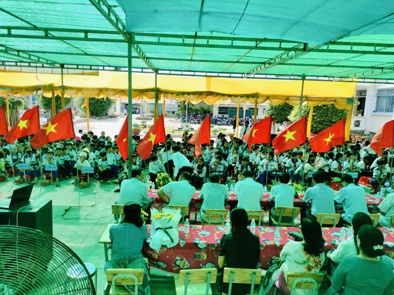 Đến dự buổi lễ có đồng chí Nguyễn Minh Trí - Huyện uỷ viên, Trưởng phòng Giáo dục đào tạo Huyện Mỹ Tú; đồng chí Trần Cơ Vĩnh - Nguyên Huyện uỷ viên, Nguyên Phó trưởng ban tuyên giáo Huyện uỷ, Nguyên Trưởng phòng Giáo dục đào tạo huyện Mỹ Tú; đồng chí Trần Văn Chính - Phó Bí thư, Chủ tịch Hội đồng nhân dân xã Mỹ Hương; đồng chí Bùi Minh Đương - Đảng uỷ viên, Phó Chủ tịch Hội đồng nhân dân xã Mỹ Hương; đồng chí Lê Thanh Nghiệm - Bí thư ấp Xóm Lớn; đồng chí Ngô Quốc Tuấn - Trưởng ban đại diện cha mẹ học sinh; đồng chí Nguyễn Thị Bé Hiếu - Phó Bí thư chi bộ, Phó Hiệu trưởng phụ trách trường TH Mỹ Hương A; các nguyên BGH, giáo viên, nhân viên đã về hưu, cùng với tập thể giáo viên và các em học sinh của trường.