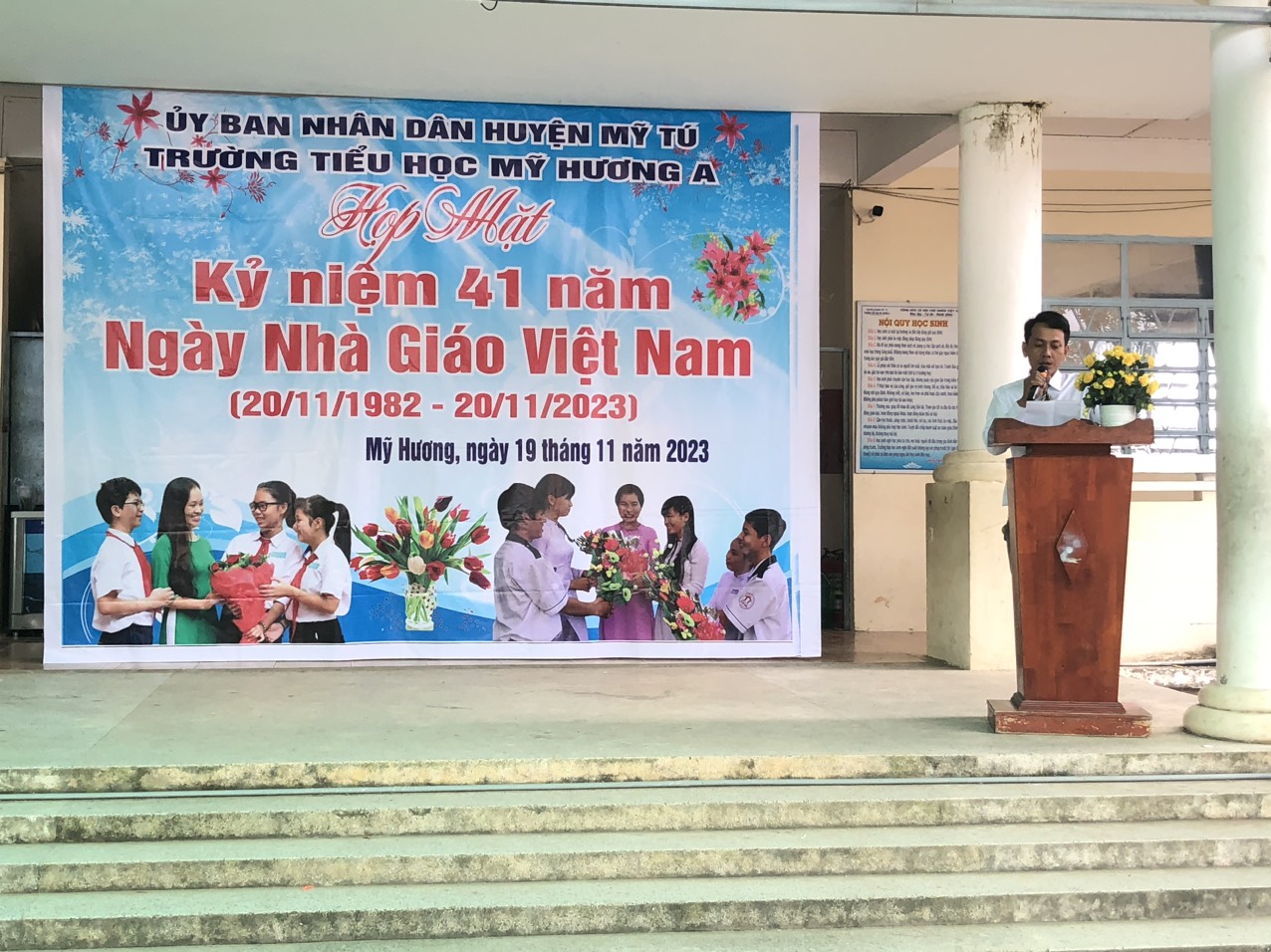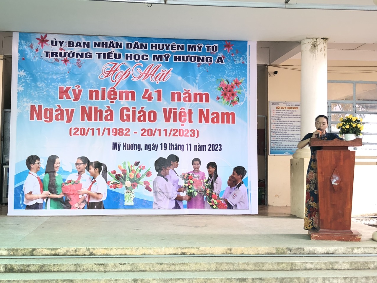 Cô Nguyễn Thị Bé Hiếu - Phó hiệu trưởng: ôn lại truyền thống chào mừng ngày nhà giáo Việt Nam
