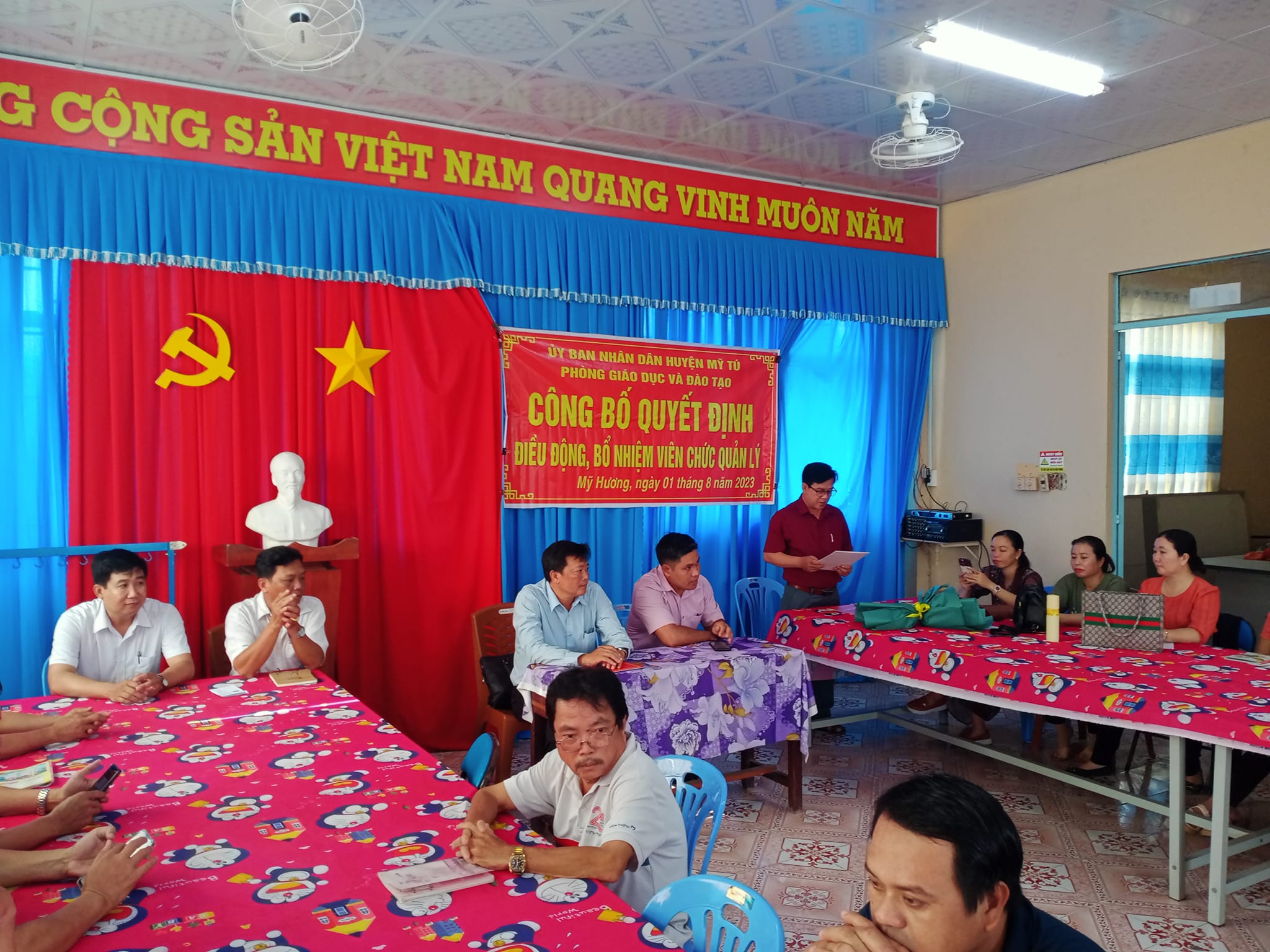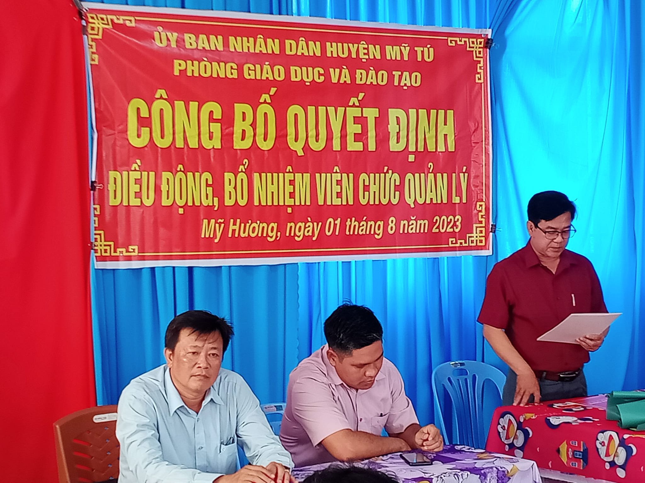 ✍️✍️✍️Sáng ngày 01/8/2023 tại Trường Tiểu học Mỹ Hương A, Phòng Giáo dục huyện Mỹ Tú đã có buổi làm việc với Trường Tiểu học Mỹ Hương A về việc công bố quyết định điều động đồng chí QUÁCH VĂN HƯỞNG - Phó Hiệu Trưởng trường Tiểu học Mỹ Thuận A về nhận nhiệm vụ Phó Hiệu Trưởng tại Trường Tiểu học Mỹ Hương A.
