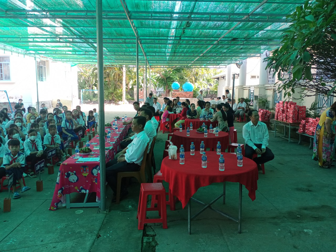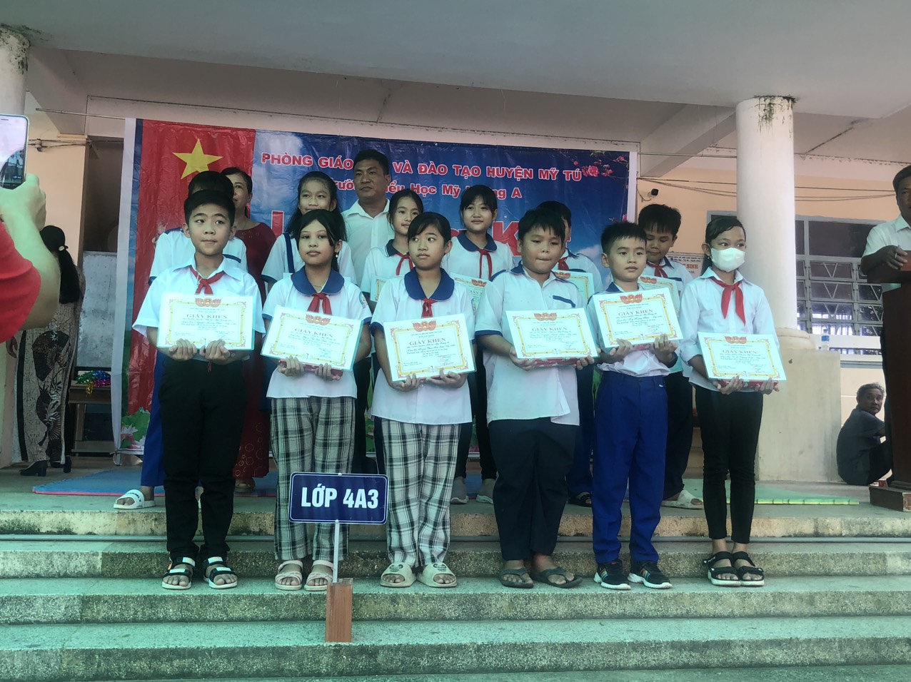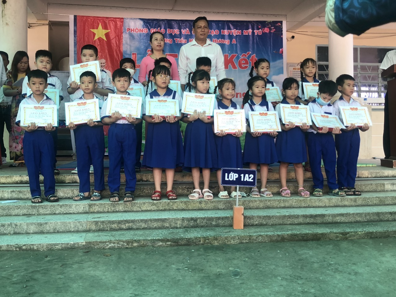 Đến tham dự buổi lễ có: Các ông/bà chính quyền địa phương, Ban đại diện cha mẹ học sinh, BGH, GV, NV và toàn thể học sinh các khối lớp 1 đến 5 tại trường TH Mỹ Hương A.